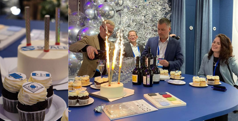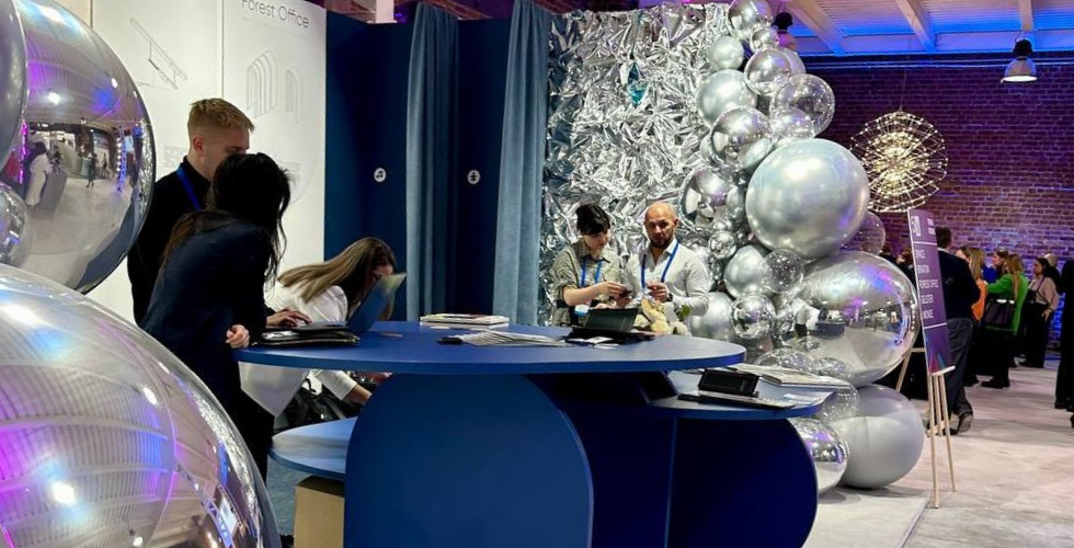 Поскольку мы отмечали первый год со дня основания компании, то решили поделиться праздничной атмосферой с посетителями стенда. Задумкой было отразить название и деятельность компании, поэтому в основу концепта легли темы открытого пространства и космоса. Также важно было транслировать актуальные тенденции эффективных комфортных рабочих пространств.