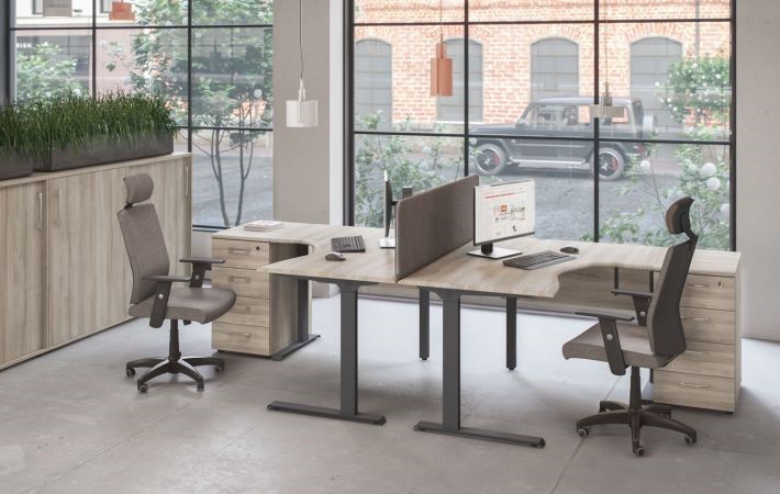В последние годы получили распространение столы с подъемным механизмом, которые также могут быть одиночными или по типу бенч-станций. Подъемные офисные столы позволяют менять высоту рабочей поверхности в зависимости от потребностей пользователя. Это особенно важно для тех, кто проводит много времени за компьютером, так как позволяет снизить нагрузку на шею, спину и глаза. Подъемные столы бывают механическими и электрическими. Механическая регулировка выполняется с помощью ручки, а электрическая – с помощью кнопки.